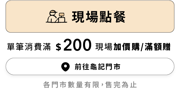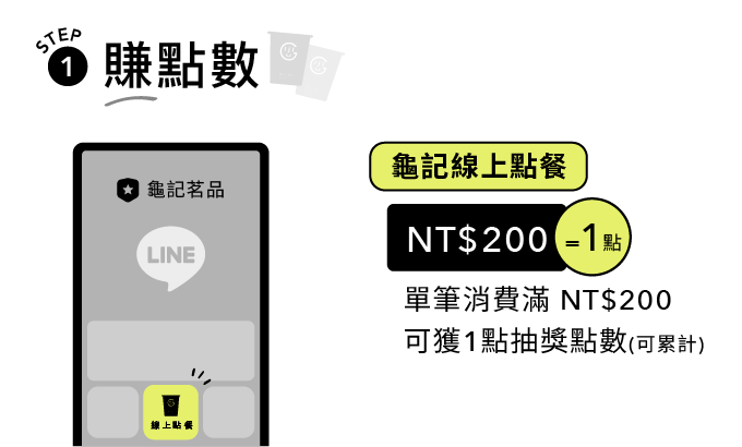 – 僅限龜記會員參加,若非線上點餐恕無法累積。