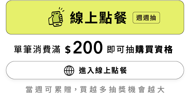 – 必須透過「線上系統點餐」累積抽獎點數。 - 注意事項
