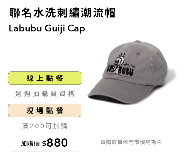 深灰水洗布料搭配精緻刺繡,質感與個性兼具。低調、可愛、又帶點酷感,戴上它,就是Labubu奇幻冒險精神的延伸。